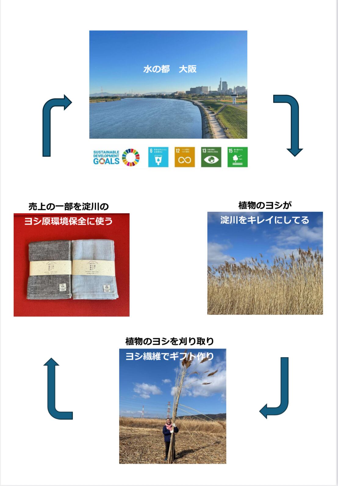 商品として販売した利益の一部を淀川の環境保全を使う。循環する商品となっています。